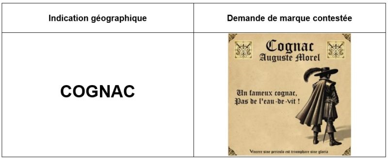 👉 Dans une opposition formée conjointement par le BNIC et l’INAO, l’INPI a rejeté la demande d’enregistrement de la marque semi‑figurative « COGNAC AUGUSTE MOREL – UN FAMEUX COGNAC, PAS DE L’EAU-DE-VIT ».