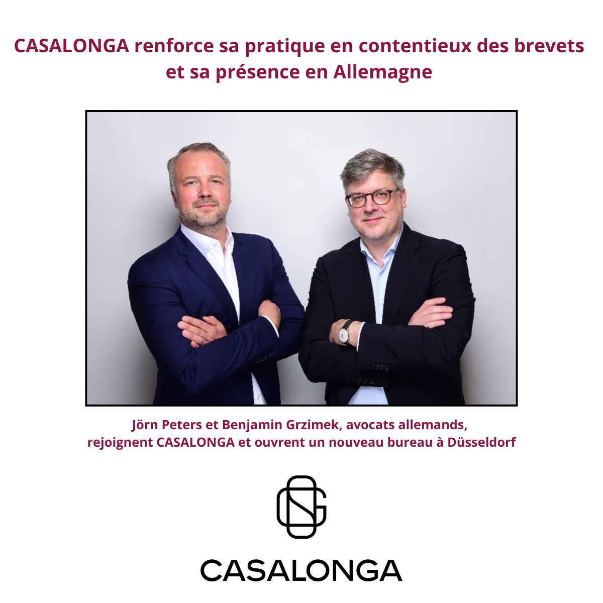 CASALONGA a le plaisir d’annoncer l’arrivée de Benjamin Grzimek et de son équipe, ainsi que l’ouverture, le 1er août 2025, d’un deuxième bureau en Allemagne, à Düsseldorf, spécialisé en contentieux des brevets.